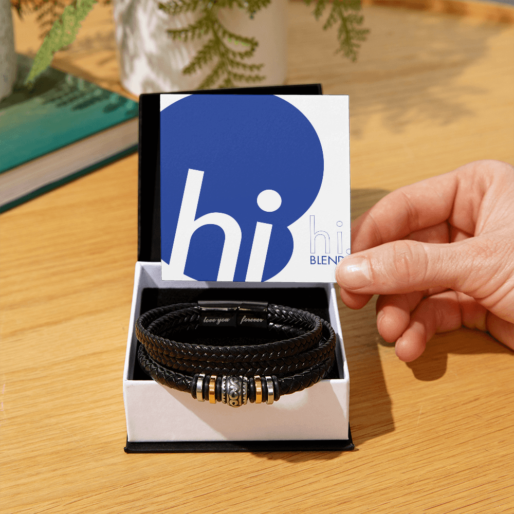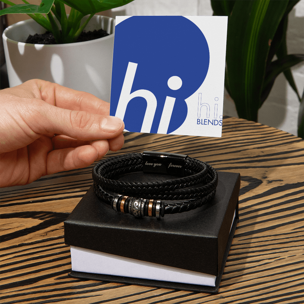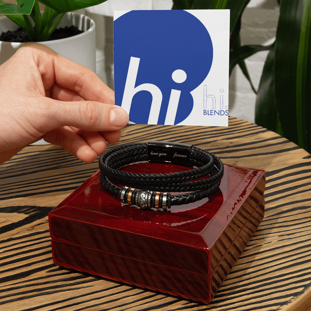 Made with durable vegan leather and sleek detailing, the hi.Blends “Love You Forever” Bracelet pairs timeless design with modern style—perfect for the man who values both fashion and meaning.